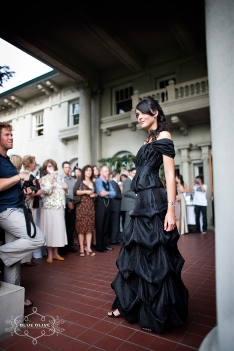 The grand patio of Hycroft Manor then transformed into a runway under the feet of models showcasing stunning gowns designed by Malene Grotrian, during the afternoon’s fashion show.